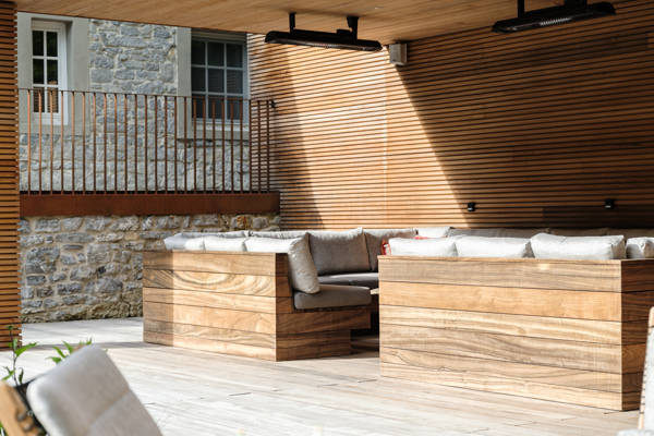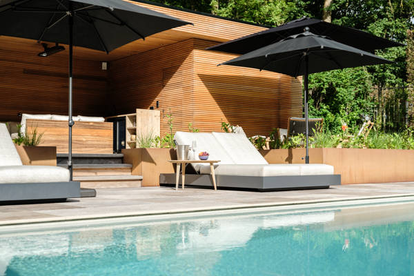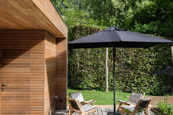 Er is een overdekt verwarmd terras met buitenkeuken, koelkast en zithoek. Verder staan er op het zonneterras bij het zwembad ligbedden en parasols. De tuin is mooi aangelegd en er is zelfs een petanquebaan en uiteraard mag de barbecue niet ontbreken.