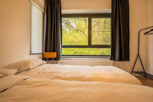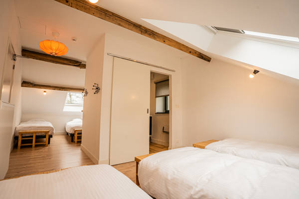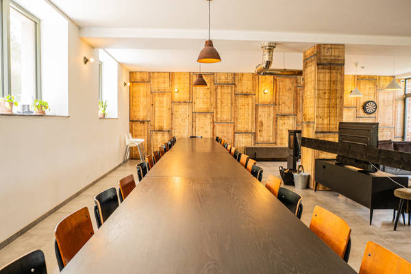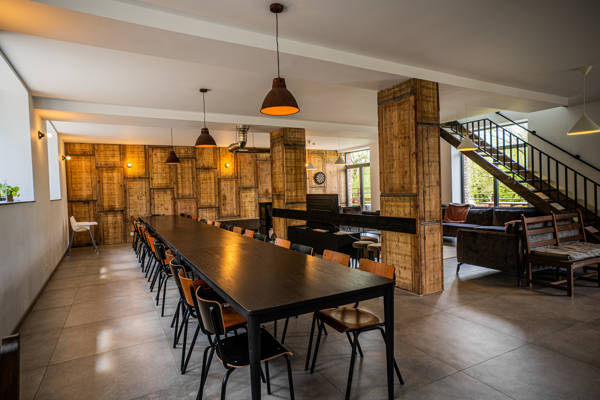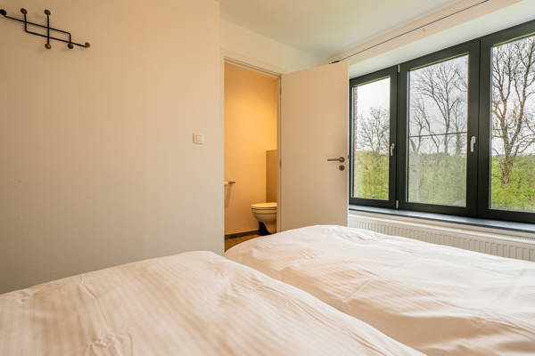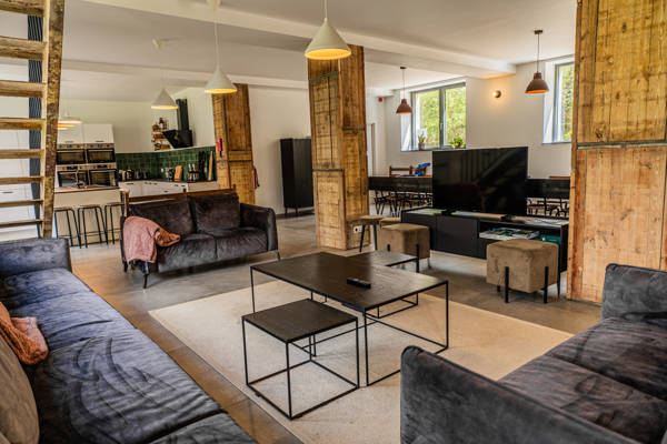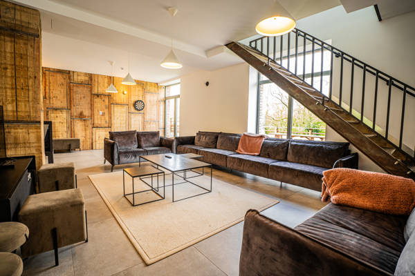Er is 1 grote leefruimte waardoor u met de gehele groep kunt ontspannen. De capaciteit kan worden aangepast naar 34 door 2 kinderbedden en 2 normale bedden toe te voegen aan de slaapkamers.