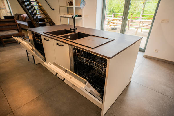 De moderne keuken is voorzien van alle gemakken zoals 2 vaatwassers, 2 koelkasten, 1 vriezer, 2 ovens, 2 combi-ovens, filterkoffiezetapparaat, broodrooster, waterkoker en mixer.