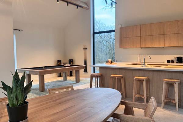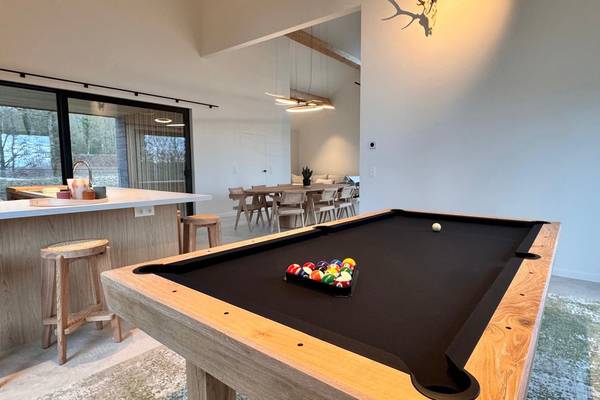 De lichtrijke leefruimte vormt het hart van de woning en biedt een prachtig uitzicht op de groene omgeving, terwijl de volledig uitgeruste keuken uitnodigt om samen heerlijke maaltijden te bereiden en lange avonden te tafelen. Na een actieve dag kunt u volledig ontspannen in de privé sauna, of nog gezellig napraten bij een spelletje biljart.