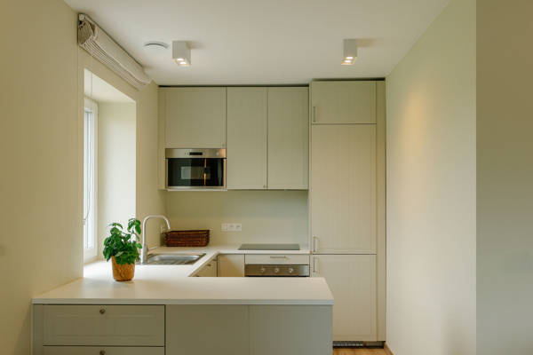 Begane grond: een lichte en knusse woonkamer met grote ramen die uitkomen op het privéterras, een open en volledig uitgeruste keuken, een comfortabele tweepersoonskamer en een moderne badkamer met ruime douche.
