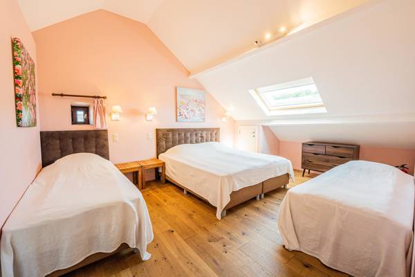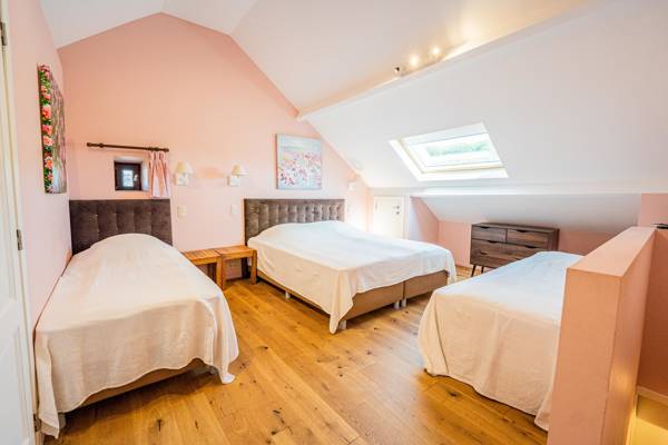 Op de begane grond vindt u de eetkamer, de volledig uitgeruste keuken en 1 2-persoons slaapkamer met badkamer. Op de 1e verdieping vindt u 3 2-persoons slaapkamers met 3 badkamers, de sauna en de bioscoop. De laatste 2 slaapkamers en 2 badkamers vindt u op de 2e verdieping.