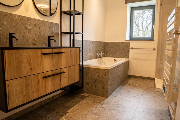 Er is 1 grote leefruimte waardoor u met de gehele groep kunt ontspannen. De capaciteit kan worden aangepast naar 34 door 2 kinderbedden en 2 normale bedden toe te voegen aan de slaapkamers.