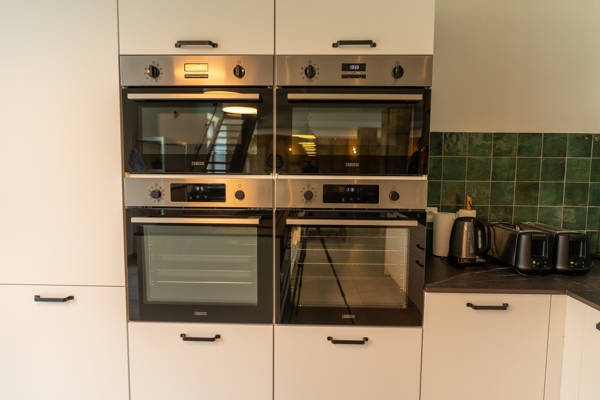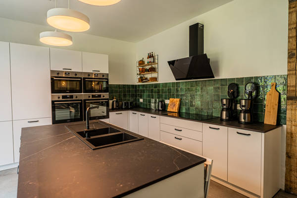 De moderne keuken is voorzien van alle gemakken zoals 2 vaatwassers, 2 koelkasten, 1 vriezer, 2 ovens, 2 combi-ovens, filterkoffiezetapparaat, broodrooster, waterkoker en mixer.