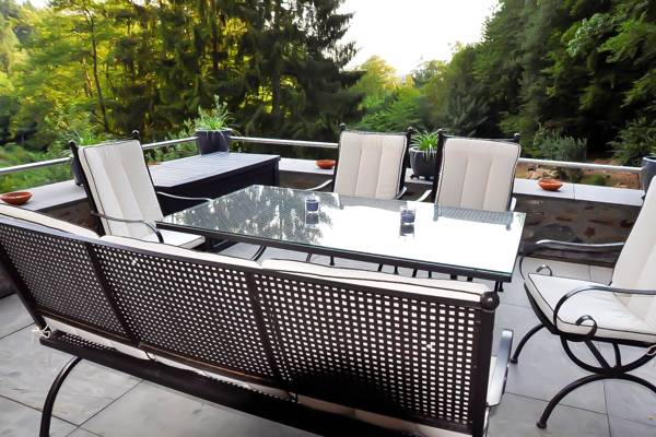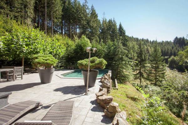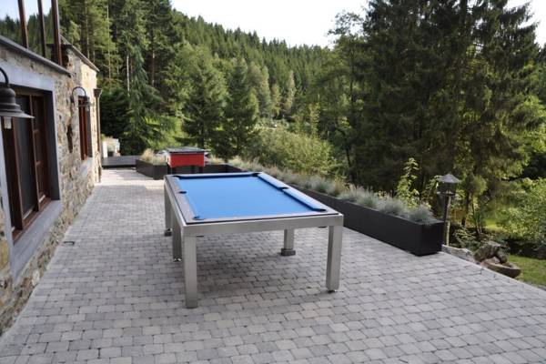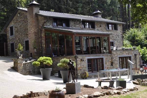 Dit vakantiehuis ligt in een afgesloten tuin van 1 ha waar het riviertje Le Nonnonruy met een kleine waterval doorheen stroomt. Buiten vindt u ruime panorama-terrassen met grote tuintafels en een gezellige zithoek met open haard. Verder zijn er naas thet verwarmd zwembad met buitendouche en ligzetels, ook een sauna met haardkachel en mooi tuinzicht, twee barbecues (hout en houtskool), een speel- en schommelhoek met vuurschaal en tal van sport- en spelmogelijkheden. Ook verharde parkeerplaatsen zijn voorzien.