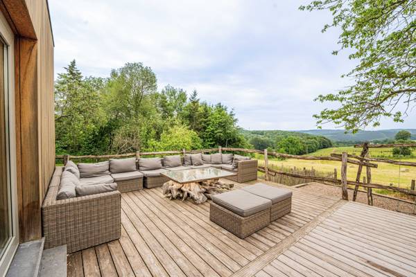 Deze charmante en hedendaagse villa is gelegen in het plaatsje Bodeux en omringd door natuur.. De villa heeft 5 royale slaapkamers en 5 luxe badkamers, in totaal is de villa voor 10 personen geschikt. Geniet van het panoramisch uitzicht op de dalen en heuvels van de Ardennen.